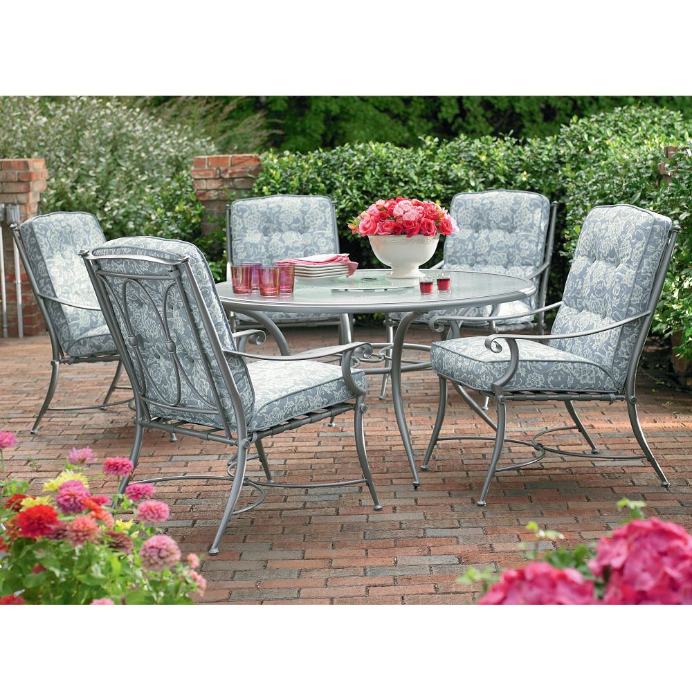 A soft-focus floral print and distinctive pewter finish give this collection a wonderful estate garden formality. Stain and fade resistant deep seating cushions and strong steel frames make it perfect for casual living
